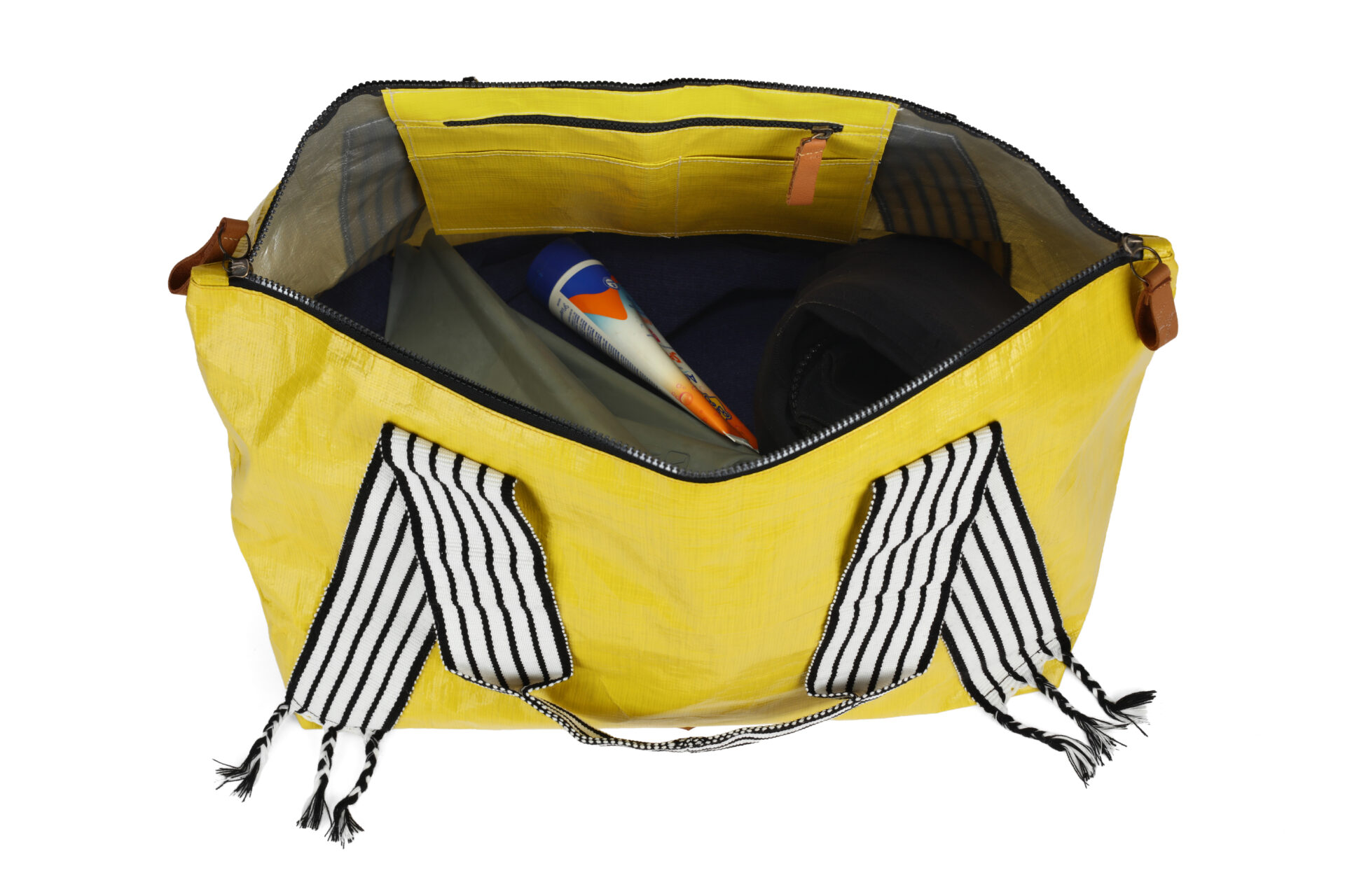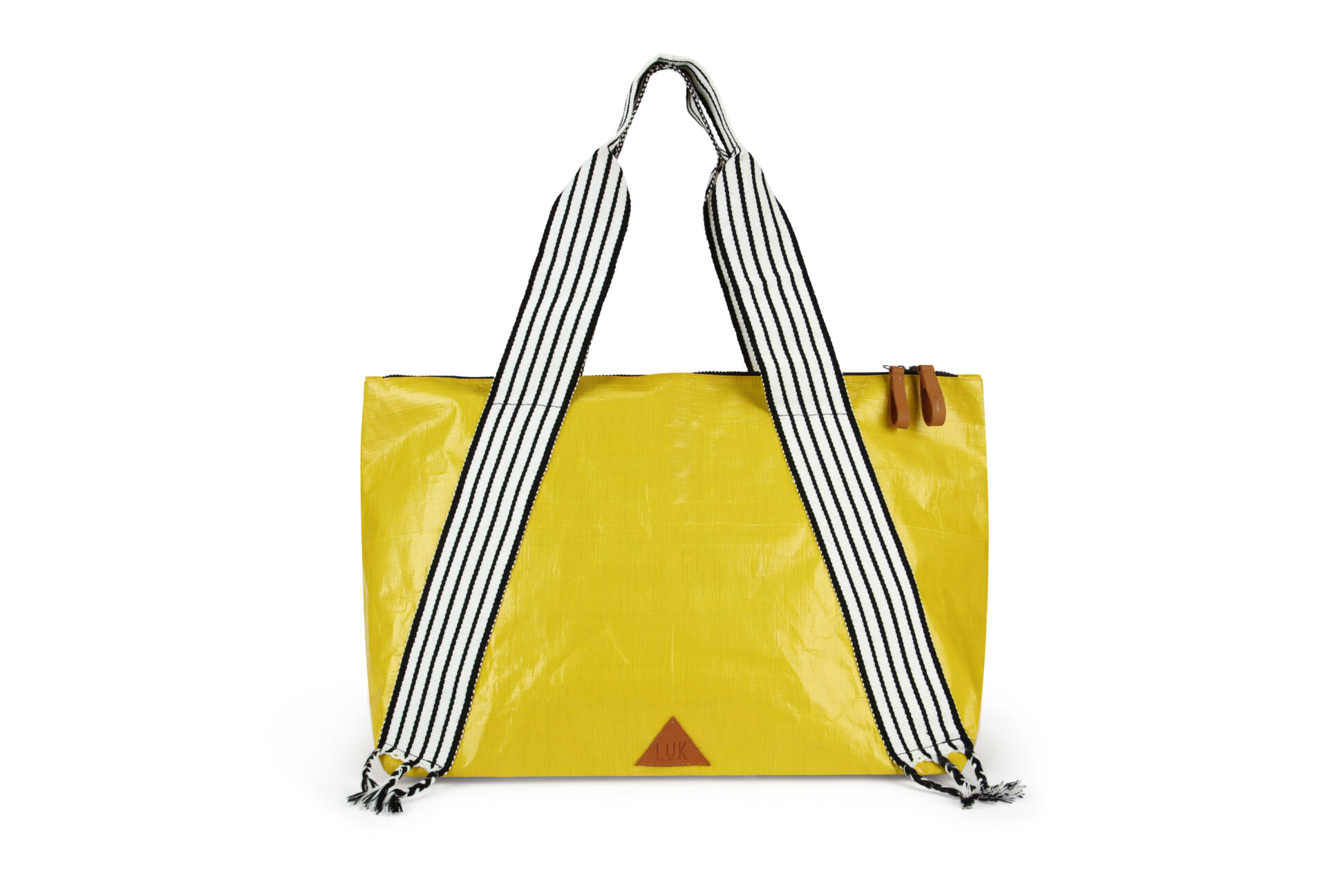 Elegant and waterproof. Woven handles representing the sash of the Peruvian northern marinera. Interior pocket, double-way closure, and leather details for a unique style. Ideal for the modern and active professional!